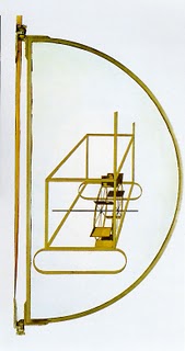 少し長い引用になったが、球形は半円、円錐形は直角三角形、円筒形は矩形、を回転させた図形である。デュシャンの「私はいつも円を、回転するものを求めていた」という回転に対する関心のもとのひとつはユークリッド原論にあるように思われる。たとえば、「隣金属製の水車のある滑溝(図2)」の半円のサッシは完全な半円ではないようだが、定義14の「半円」を踏まえているのではないだろうか。