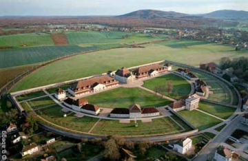 デュシャンは1912年の10月にピカビア、アポリネールとジュラ県のエティヴァル村にあるピカビア夫人のビュッフェ家の別荘に自動車で旅行する。この行程が「グリーン・ボックス」の「1 余白のノート(注8)」に反映されている。ところで、この同じジュラ県のアルケスナンにはルドゥーが作ったショーの製塩工場があるのである(図14)。アルケスナンはエティヴァル村からほぼ真北に50キロくらいの所であろう(注9)。ただ、エティヴァル村は山地にあり、直線的には行けない。