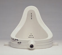 - 2「泉」は工場で生産された男性用小便器である。デュシャンはこれに全く手を加えず、「R.Mutt 1917」とサインした。「Fountain」と題をつけ、ニューヨーク・アンデパンダン展に出品したが、「泉」は仕切りの裏側におかれ、無視された。既製品をそのまま、あるいは、少し手を加えて作品にすることを「レディ・メイド」と呼ぶようになる。